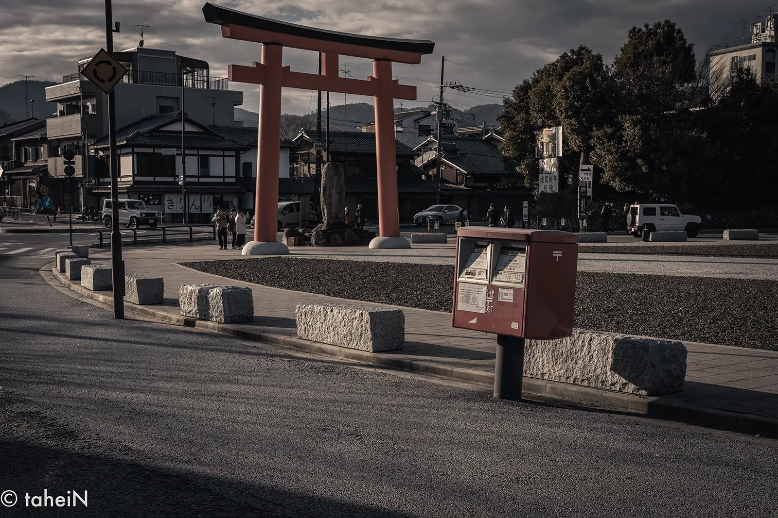 上賀茂神社の脇に、歩道ではなく車道を向いたポストがありました。危ないやろがい!